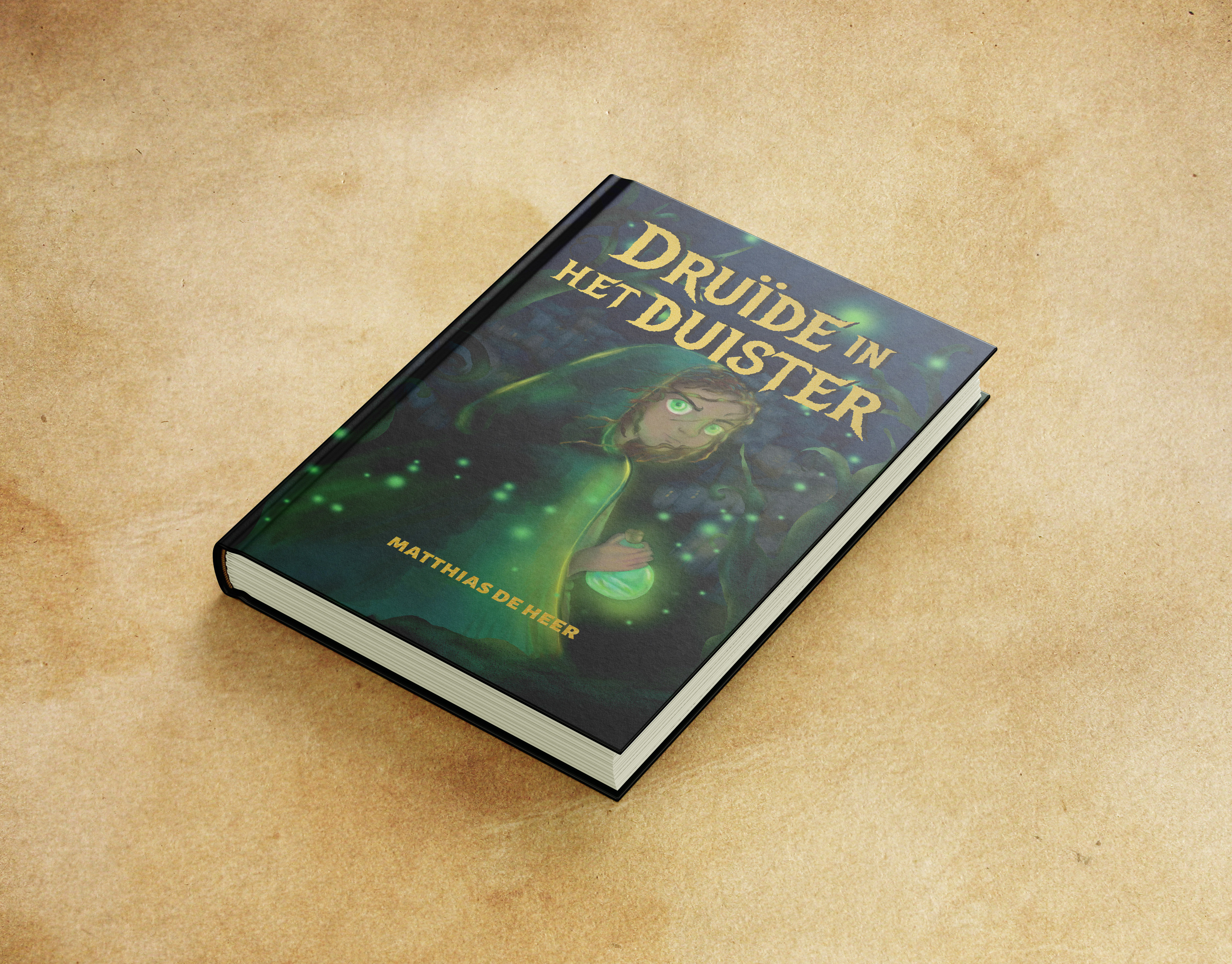 Boekontwerp van het Nederlandstalige fantasyboek 'Druïde in het duister' van Matthias de Heer
