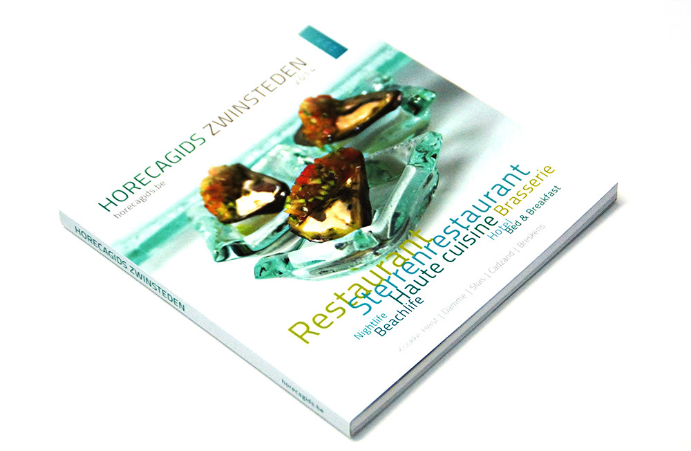Horecagids editie Zwinsteden gedrukt op 30.000 exemplaren verdeeld over alle deelnemende (sterren)restaurants, hotels, eetcafés. Velvet touch cover, in witte counterdisplay.