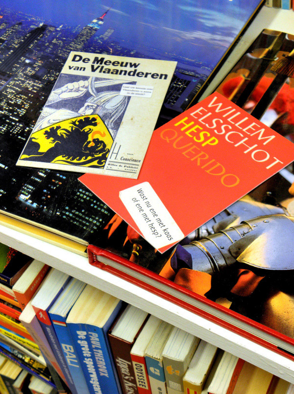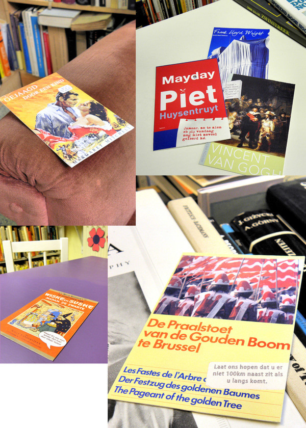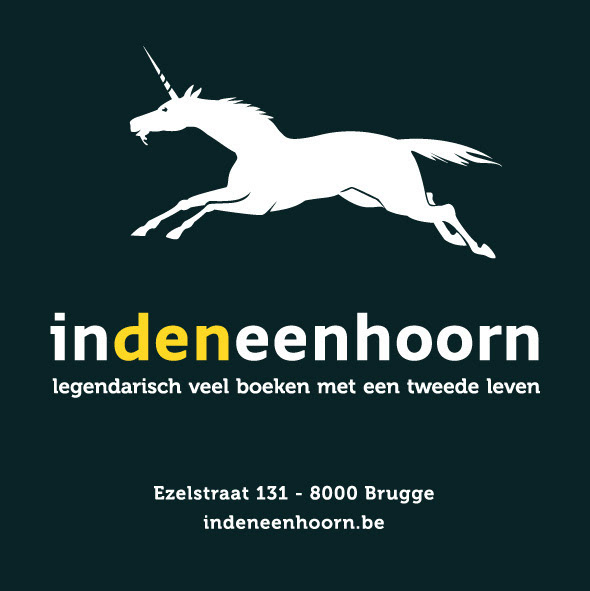 A low-budget postcard-mailing for a traditional secondhand bookshop In Den Eenhoorn (At the Unicorn) in Bruges, Belgium.