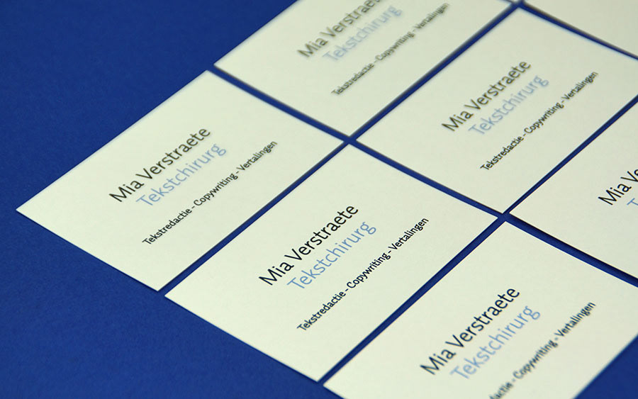 Visitekaartje voor copywriter Mia Verstraete www.tekstchirurg.be
