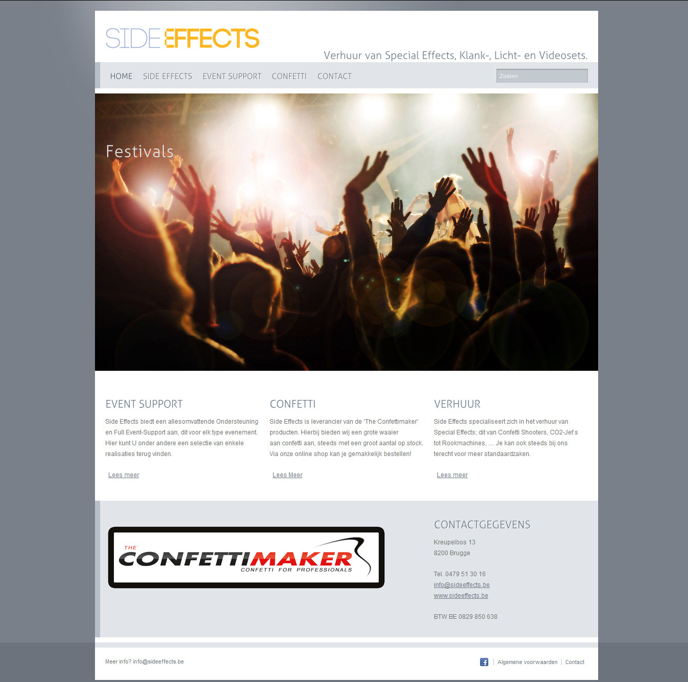 Huisstijl en website voor Side Effects, een bedrijf dat effectmachines voor evenementen verhuurd en verkoopt.