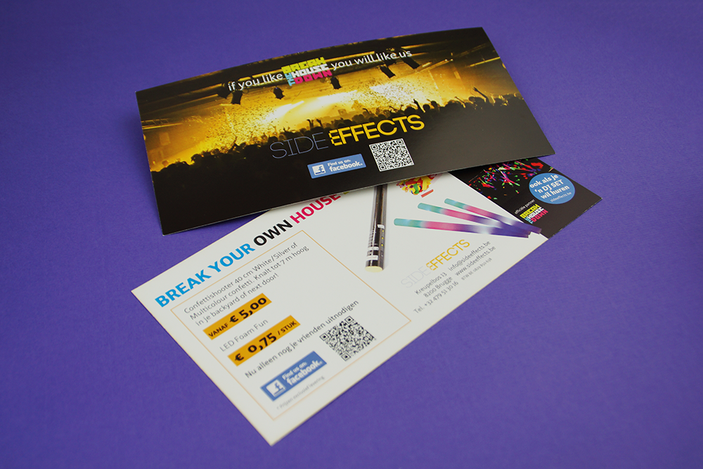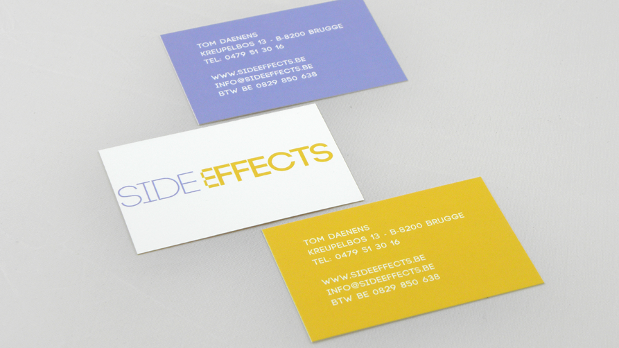 Huisstijl, website en logo voor een bedrijf dat effectmachines verhuurd en verkoopt. www.sideeffects.be